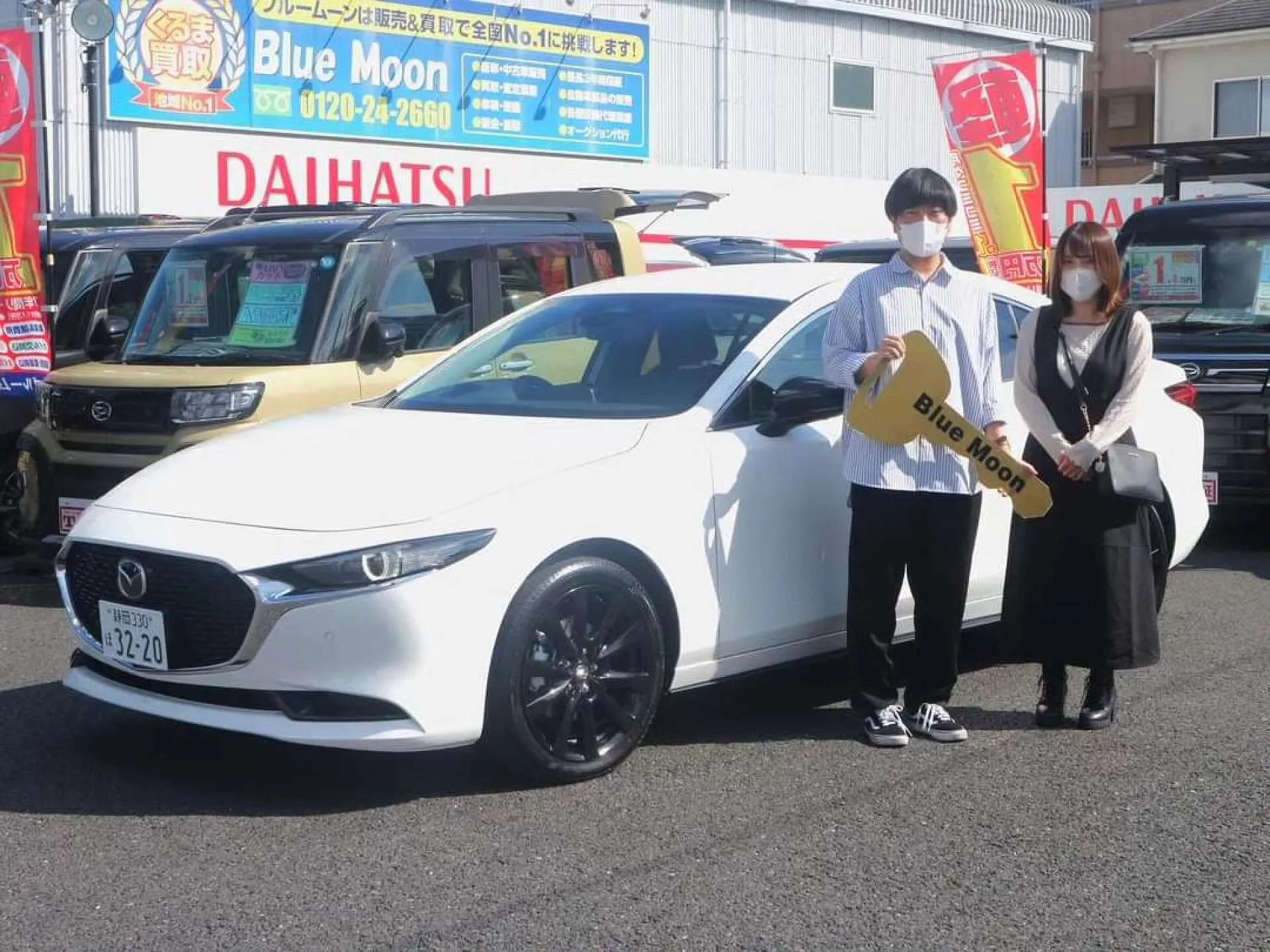 2023.9.10 静岡県のS様へ新車MAZDA3納車式を行いました!ネットを見てご来店いただき、超低金利ローンが魅力的とご契約いただきました。ボディカラーやオプションなど既に決めていただいており、S様こだわりの一台に仕上がりましたね(^^♪ピカピカのコーティングも施工しましたので、大切に乗ってあげてくださいね♪これからも末長くお付き合いよろしくお願いしますm(__)m