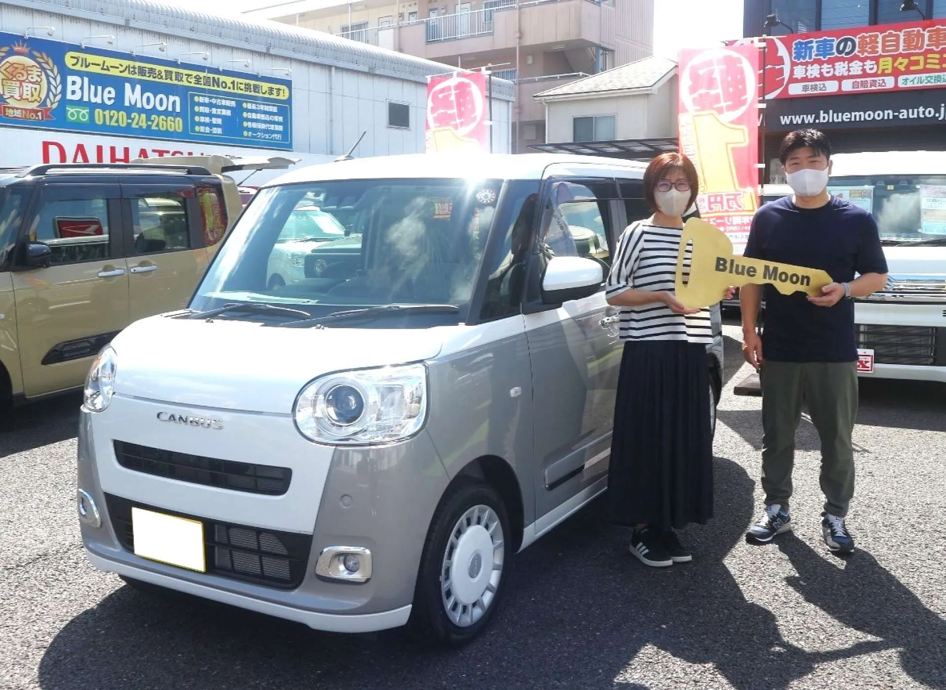 2023.9.9 名古屋市のO様へムーブキャンバスの納車式を行いました!新車でキャンバスが欲しいとご来店頂き、見た目と標準装備が充実してるからこれから楽しみ!とお喜び頂けました(^^♪毎日の通勤距離があるとのことですので運転も楽しくなりますね!かわいい相棒大事にしてあげてくださいね♪これからも末長くお付き合いよろしくお願いしますm(__)m