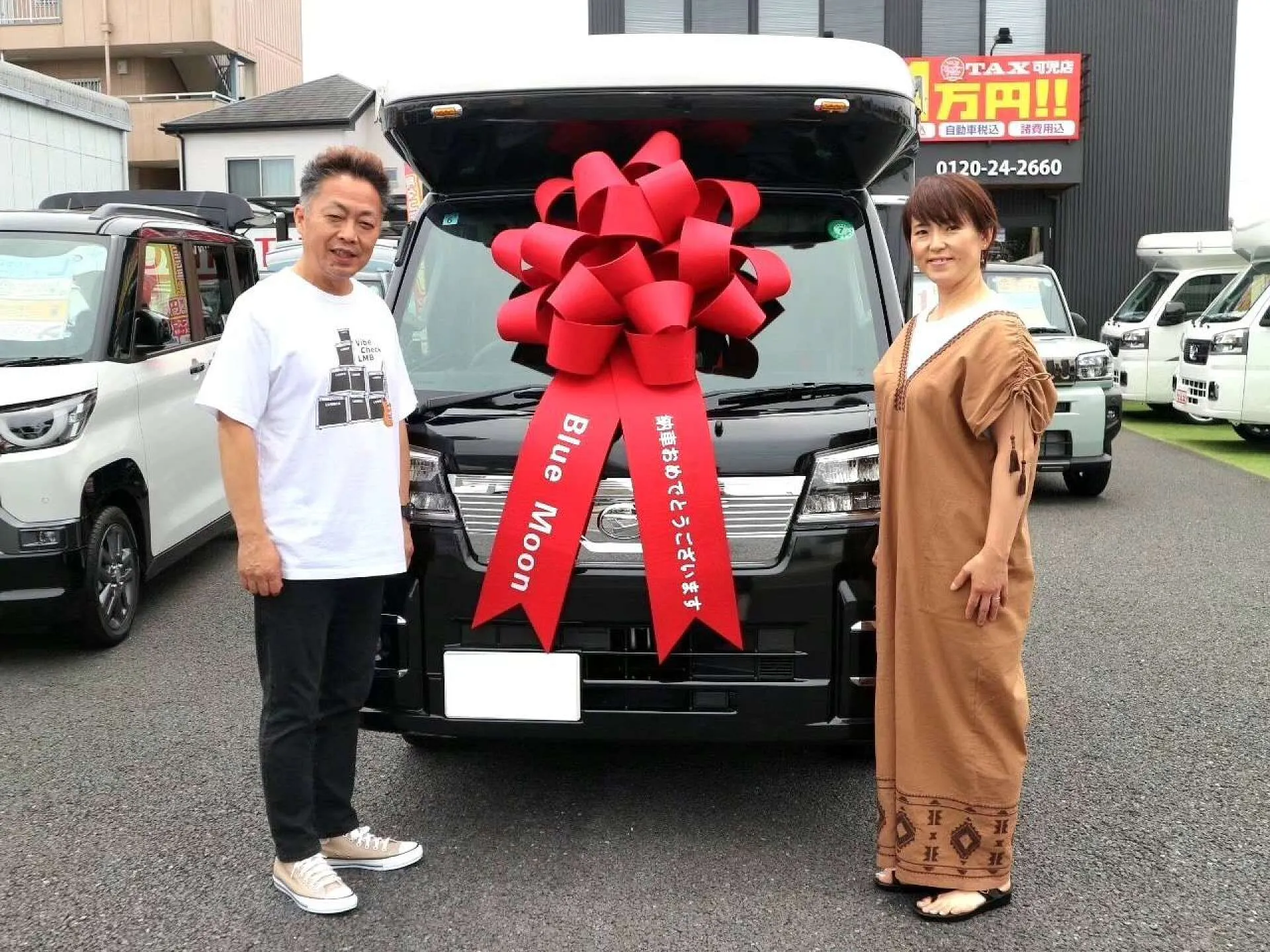 2024.6.16 千葉県のF様へスペーシアカスタム納車式を行いました。この顔のスペーシアカスタムが好きで、金額、装備など探して頂き当社のがドンピシャと即決ご契約頂きました!オススメのTAXコーティングも施工済みでピカピカでしてよかったとお喜び頂けました♪ご満足頂けて安心しました。これからも末長くお付き合いよろしくお願いしますm(__)m