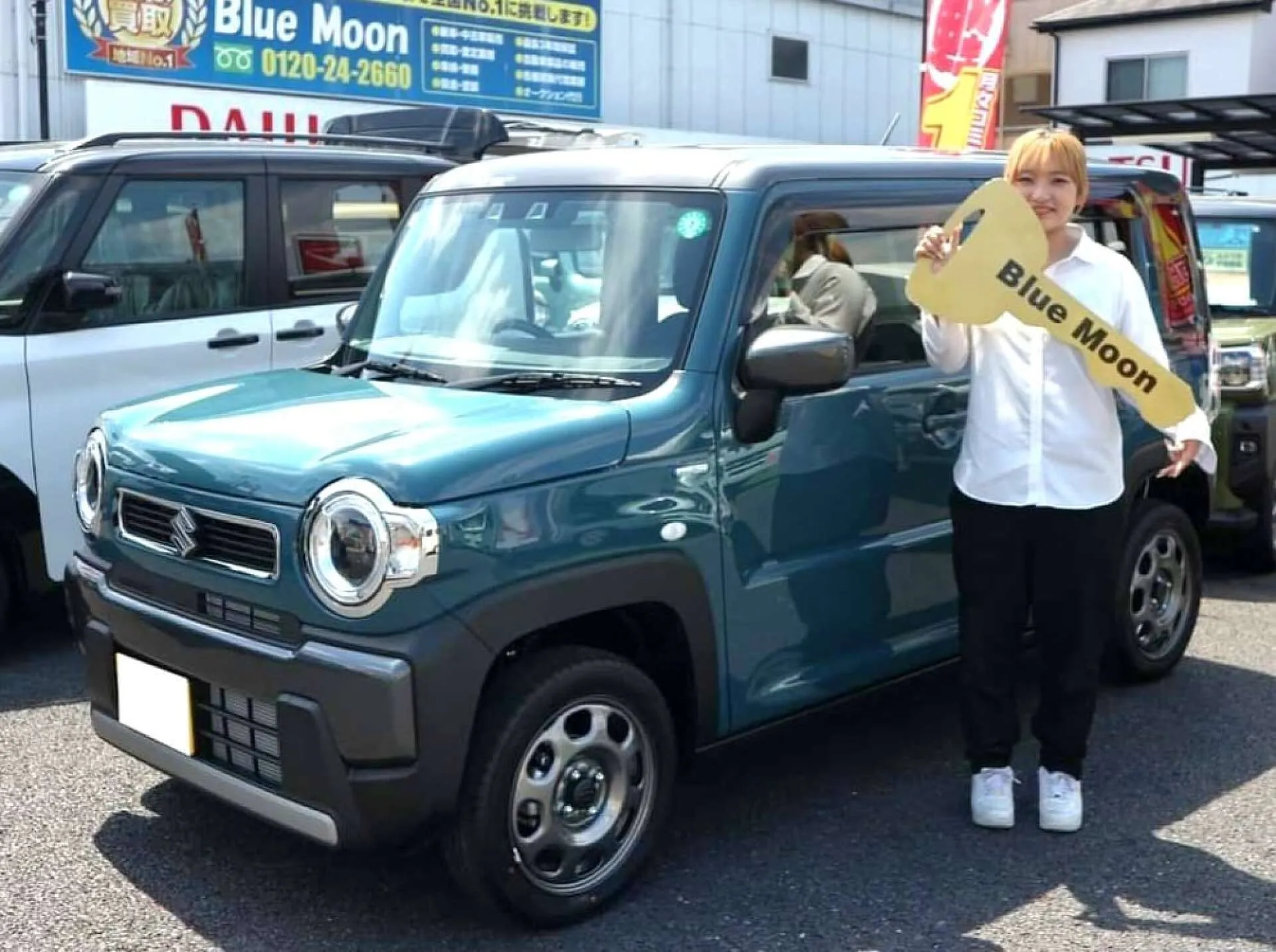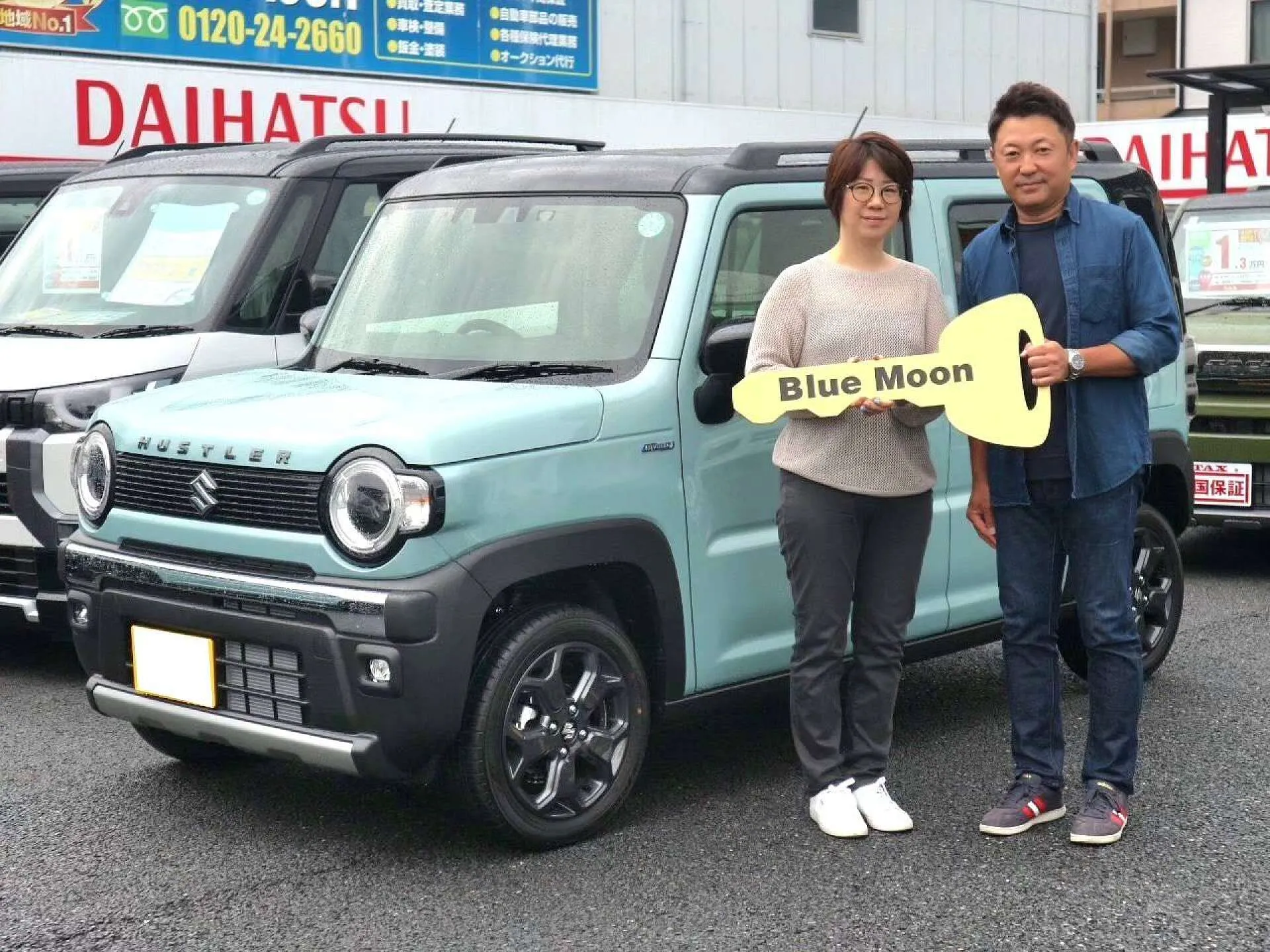 2024.6.23 岐阜県羽島郡のM様へ新車ハスラータフワイルド納車式を行いました!超低金利ローンが魅力的とご来店いただき、せっかくならと新型のハスラーをお待ちいただきました。かわいいお色とワイルドな見た目がマッチして、とてもお気に入りいただけて良かったです。ピカピカのコーティングも施工しましたので、大切に乗ってあげてくださいね♪これからも末長くお付き合いよろしくお願いしますm(__)m