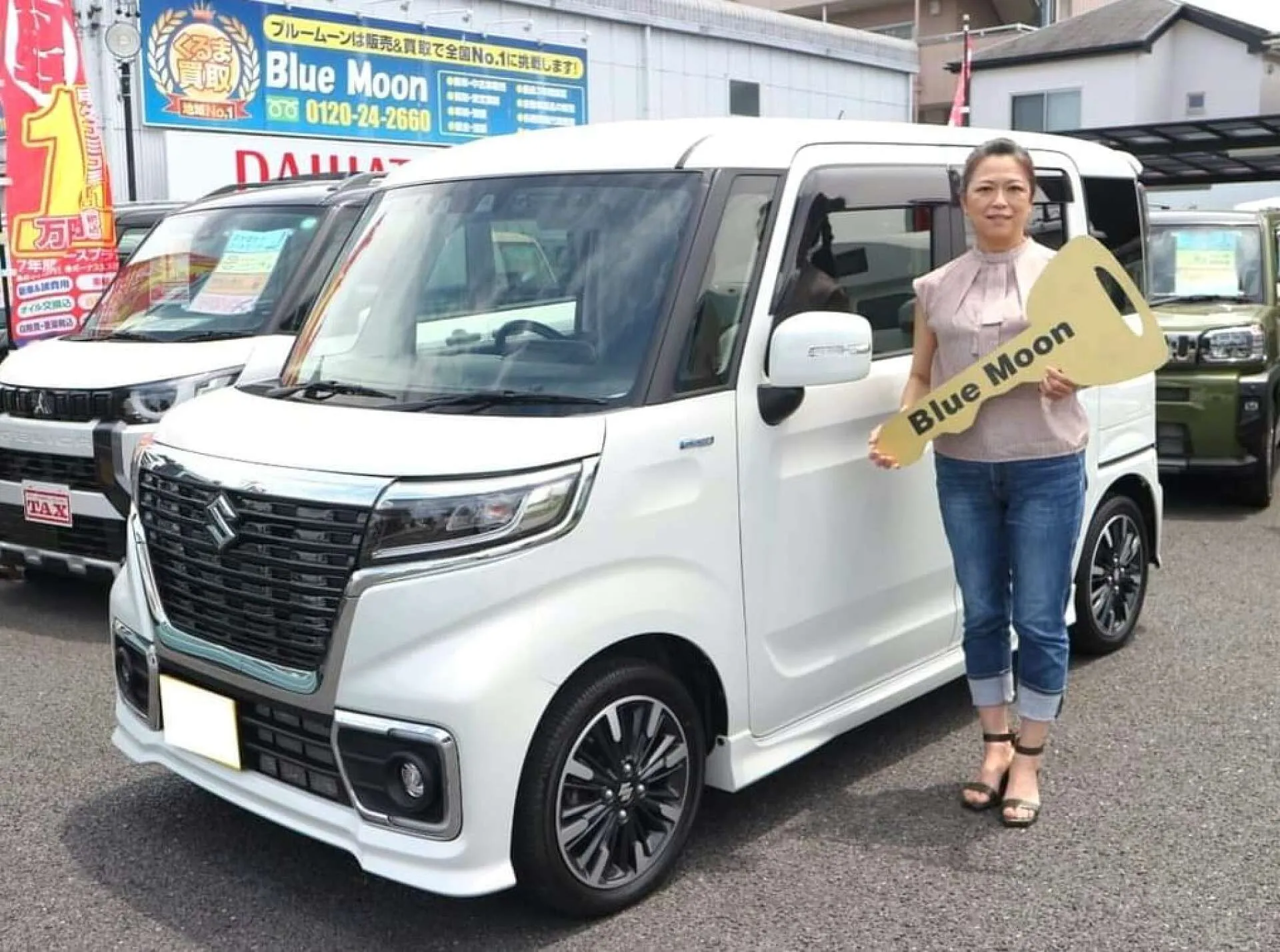 2024.6.27 春日井市のK様へスペーシアカスタム納車式を行いました!すぐに乗れる軽自動車を探していたところ、ネットで見たスペーシアカスタムがカッコよかったとご来店いただきました。スタイリッシュで燃費も良く、快適なドライブをお楽しみいただけること間違いなしの一台です!楽しいカーライフをお過ごしくださいね(^^♪これからも末長くお付き合いよろしくお願いしますm(__)m