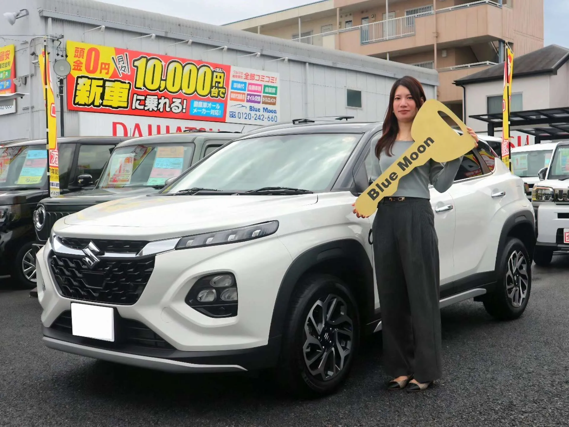 2205.10.19 この度はフロンクスのご納車おめでとうございます!K様こだわりのパールツートンカラーが、とってもお洒落で素敵です。最新のナビはもちろん、運転に安心感を与える360度カメラも装備され、ドライブがさらに快適になりますね♬この個性的なコンパクトSUVで、これからのカーライフを存分にお楽しみください。安全運転で、たくさんの思い出を作ってくださいね。ありがとうございました!