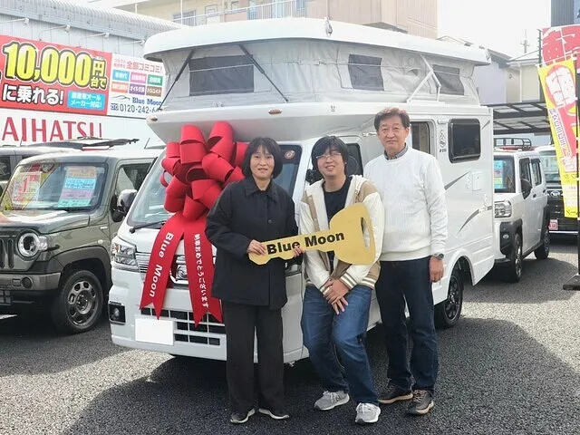 2025.11.1 ネットを見てご来店いただき、すぐに乗りたいということで即納可能な展示車両をお選びいただきました!オプション多数、ブラックアルミホイールのかっこいい一台です。便利、快適なキャンピングカーですのでお楽しみいただけること間違いなしです♬大阪・東京のW土産もありがとうございました(*^_^*)ご遠方ではございますがこれからも末永くお付き合いよろしくお願いしますm(__)m