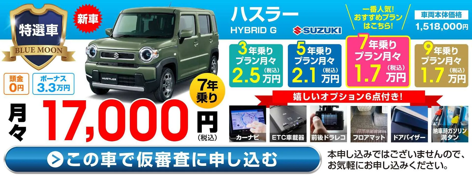 可児市で新車のハスラーワンダラーが月々定額1,5万円~