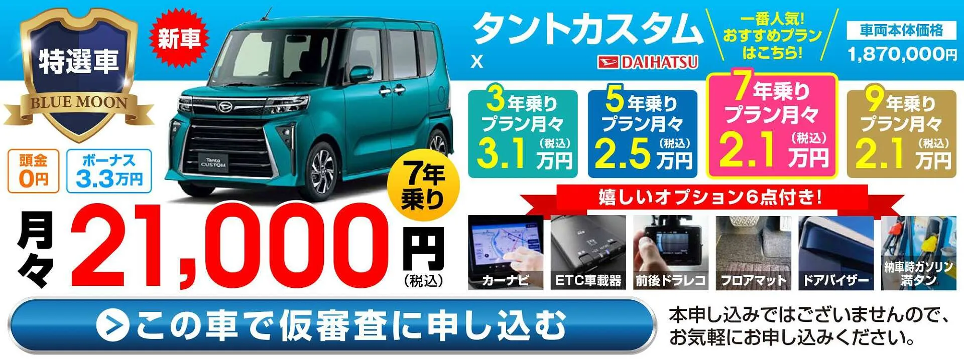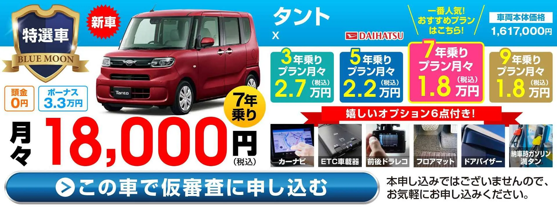 可児市で新車のタントカスタムXが月々定額1,4万円~