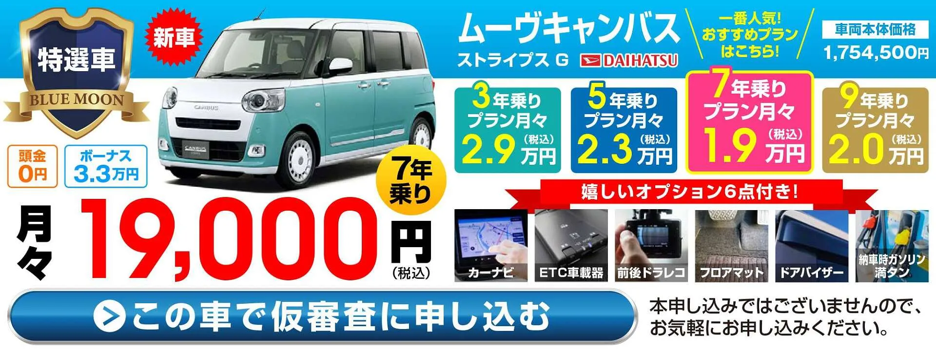 可児市で新車のムーヴキャンバスGが月々1,4万円~